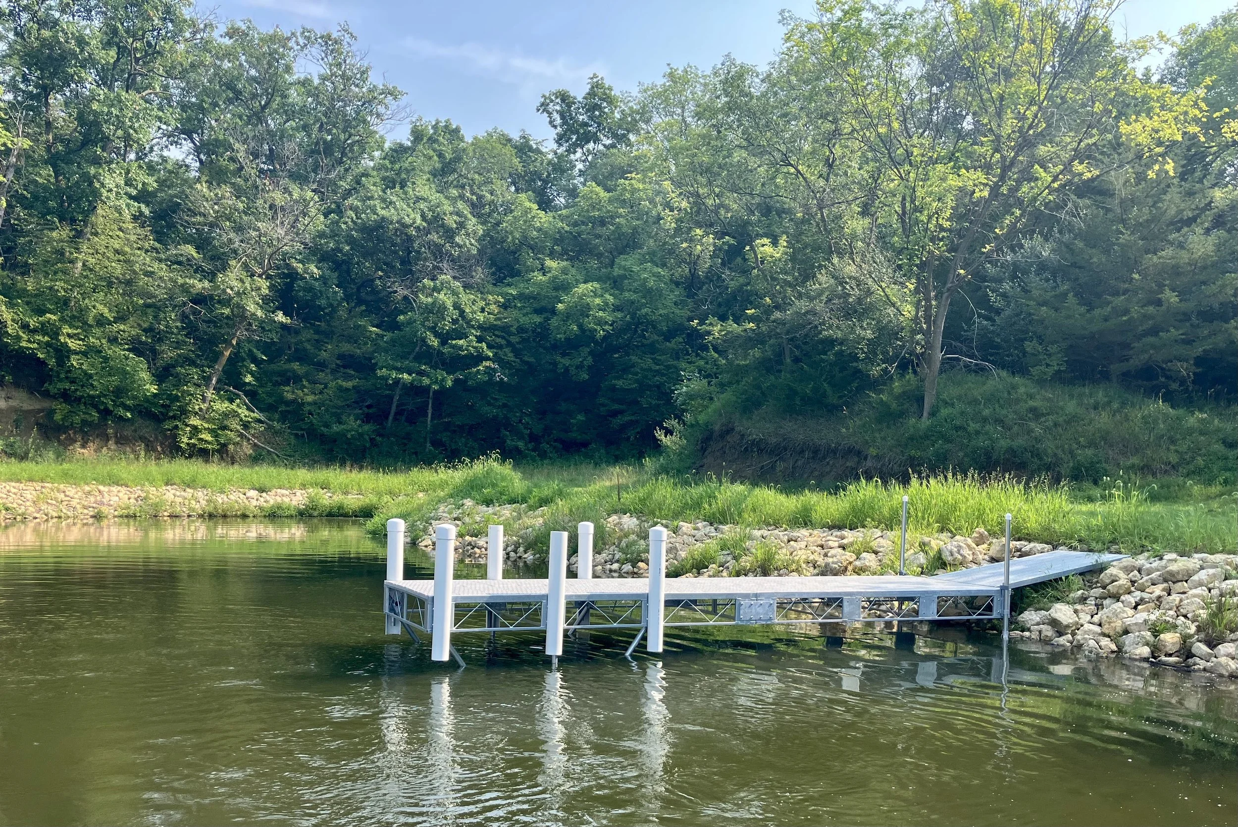 In July 2025, a small dock was installed on the south shore to provide water access to the recreational amenities there. Funds for the $10,000 dock were raised at the 2024 and 2025 Friends of Lake Panorama Beach Balls.